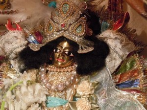 Kṛṣṇa was very pleased with the atmosphere of the forest where flowers bloomed and bees and drones hummed very jubilantly. While the birds, trees and branches were all looking very happy, Kṛṣṇa, tending the cows, accompanied by Śrī Balarāma and the cowherd boys, began to vibrate His transcendental flute. After hearing the vibration of the flute of Kṛṣṇa, the gopīs in Vṛndāvana remembered Him and began to talk amongst themselves about how nicely Kṛṣṇa was playing His flute. When the gopīs were describing the sweet vibration of Kṛṣṇa’s flute, they also remembered their pastimes with Him; thus their minds became disturbed, and they were unable to describe completely the beautiful vibrations. While discussing the transcendental vibration, they remembered also how Kṛṣṇa dressed, decorated with a peacock feather on His head, just like a dancing actor, and with blue flowers pushed over His ear. His garment glowed yellow-gold, and He was garlanded with a vaijayantī necklace. Dressed in such an attractive way, Kṛṣṇa filled up the holes of His flute with the nectar emanating from His lips. So they remembered Him, entering the forest of Vṛndāvana, which is always glorified by the footprints of Kṛṣṇa and His companions.