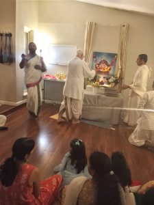 Therefore, in the Śrīmad-Bhāgavatam it is said that this is the incarnation of God in this age. And who worships Him? The process is very simple. Just keep a picture of Lord Caitanya with His associates. Lord Caitanya is in the middle, accompanied by His principal associates—Nityānanda, Advaita, Gadādhara, and Śrīvāsa. One simply has to keep this picture. One can keep it anywhere. It is not that one has to come to us to see this picture. Anyone can have this picture in his home, chant this Hare Kṛṣṇa mantra, and thus worship Lord Caitanya. That is the simple method. But who will capture this simple method? Those who have good brains. Without much bother, if one simply keeps a picture of Śrī Caitanya Mahāprabhu at home and chants Hare Kṛṣṇa, then one will realize God. Anyone can adopt this simple method. There is no expenditure, there is no tax, nor is there any need to build a very big church or temple. Anyone, anywhere, can sit down on the road or beneath a tree and chant the Hare Kṛṣṇa mantra and worship God. Therefore it is a great opportunity.