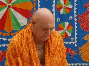 Prabhupāda: Somebody fanning, and water also. (chants maṅgalacaraṇa prayers) So śrī-caitanya-mano-‘bhiṣṭam. Śrī Caitanya Mahāprabhu’s ambition or mission. Śrī-caitanya-mahāprabhu mano ‘bhiṣṭaṁ sthāpitaṁ yena bhū-tale. His ambition was propagated or established by Śrīla Rūpa Gosvāmī, Sanātana Gosvāmī. They were ministers in charge of the then Pathan government in Bengal and very learned scholar in Urdu and Sanskrit, but after meeting Śrī Caitanya Mahāprabhu at Rāmakeli village in the district of Maldah in Bengal, North Bengal… That was supposed to be the capital of Nawab Hussain Shah. So then they joined to preach this saṅkīrtana movement or Kṛṣṇa consciousness movement. So their mission was to establish the Rādhā-Govinda Mandir, as many as possible. They first started in Vṛndāvana, Madana-mohana temple. Most Indians present here, they know. There are… [break] …temples in Vṛndāvana. There are five thousand temples in one small city of fifty thousand population, but the most important because they were established by the Gosvāmīs. Rūpa, Sanātana, Bhaṭṭa Raghunātha, Śrī Jīva, Gopāla Bhaṭṭa, Dāsa Raghunātha, the Six Gosvāmīs, direct disciple of Śrī Caitanya Mahāprabhu. The Sanātana Gosvāmī established first the Madana-mohana temple. Then Rūpa Gosvāmī established Govindajī’s temple. Then Jīva Gosvāmī established Rādhā-Dāmodara temple, then… [break] …Gosvāmī established Rādhā-Madana-mohana temple. Śyāmānanda Gosvāmī, he established Śyāmasundara temple. These are important temples.