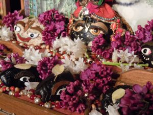 This Herā–pañcamī festival takes place five days after the Ratha–yātrā festival. Lord Jagannātha has left His wife, the goddess of fortune, and gone to Vṛndāvana, which is the Guṇḍicā temple. Due to separation from the Lord, the goddess of fortune decides to come to see the Lord at Guṇḍicā. The coming of the goddess of fortune to Guṇḍicā is celebrated by Herā–pañcamī. Sometimes this is misspelled as Harā–pañcamī the section known as ativāḍī. The word herā means “to see” and refers to the goddess of fortune going to see Lord Jagannātha. The word pañcamī means “the fifth day” and is used because this takes place on the fifth day of the moon.