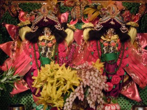In the book known as Adhyātma–rāmāyaṇa, there are statements in Chapters Twelve to Fifteen about the worship of the Deities Śrī Rāmacandra and Sītā. There it is stated that during Lord Rāmacandra’s time there was a brāhmaṇa who took a vow to fast until he saw Lord Rāmacandra. Sometimes, due to business, Lord Rāmacandra was absent from His capital for a full week and could not be seen by citizens during that time. Because of his vow, the brāhmaṇa could not take even a drop of water during that week. Later, after eight or nine days, when the brāhmaṇa could see Lord Rāmacandra personally, he would break his fast. Upon observing the brāhmaṇa’s rigid vow, Lord Śrī Rāmacandra ordered His younger brother Lakṣmaṇa to deliver a pair of Sītā–Rāma Deities to the brāhmaṇa. The brāhmaṇa received the Deities from Śrī Lakṣmaṇajī and worshiped Them faithfully as long as he lived. At the time of his death, he delivered the Deities to Śrī Hanumānjī, who, for many years, hung Them around his neck and served Them with all devotion. After many years, when Hanumānjī departed on the hill known as Gandha–mādana, he delivered the Deities to Bhīmasena, one of the Pāṇḍavas, and Bhīmasena brought Them to his palace, where he kept Them very carefully. The last king of the Pāṇḍavas, Kṣemakānta, worshiped the Deities in that palace. Later, the same Deities were kept in the custody of the kings of Orissa known as Gajapatis. One of the ācāryas, known as Narahari Tīrtha, who was in the disciplic succession of Madhvācārya, received these Deities from the King of Orissa.