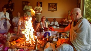 Some Conclusions– We can see from the above 5 purports/letter/lecture how much of a science is this Krsna Consciousness. It is not a thing to be taken lightly or whimsically, if we want the result. We must begin as neophytes by daily offering to His lotus feet, flowers, tulasi leaves and other items of interest to the Lord, as well as actually bowing down on the floor and offering our obeisances to Him. The first result will be detachment from gross material activities, then automatically, we will develop spontaneous attachment for serving Him. This process of daily hearing of Srimad Bhagavatam (from the authorized persons) and worship of the Deity form of the Lord will help us to become purified. It is a great science and must be followed to get the Transcendental result–Krsna Prema…..