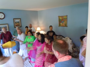 Note-Today was my birthday and these great souls Navadvipa das, his wife Brajabhumi dasi, and their three children-Ram das, Laksman das and Radharani devi dasi, all came for a short visit to our Ashram and we all did kirtan together after feeding the cows across the road.They brought some very sumptuous Krsna prasadam, left me some in a b-day gift bag, and I haven’t checked it yet, but I think they also left a donation in the temple room box. This is a family of devotees, wonderful devotees, who have understood the Vaisnava Philosophy and practice it daily.