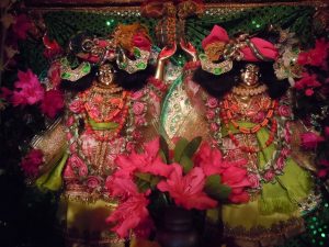 Your first question, shall Srimati Radharani’s feet be showing, the answer is no, they should never be seen. Krsna’s feet, however, should be showing.