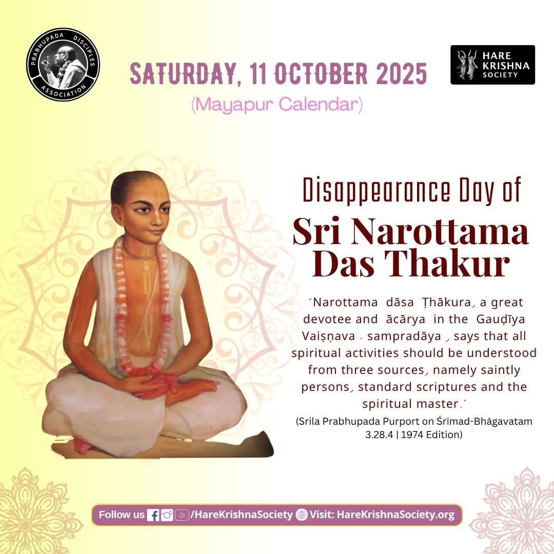 Let’s take a moment to remember and celebrate the life of Śrīla Narottama dāsa Ṭhākura, a great saint and devotee. His devotion and teachings continue to inspire us.