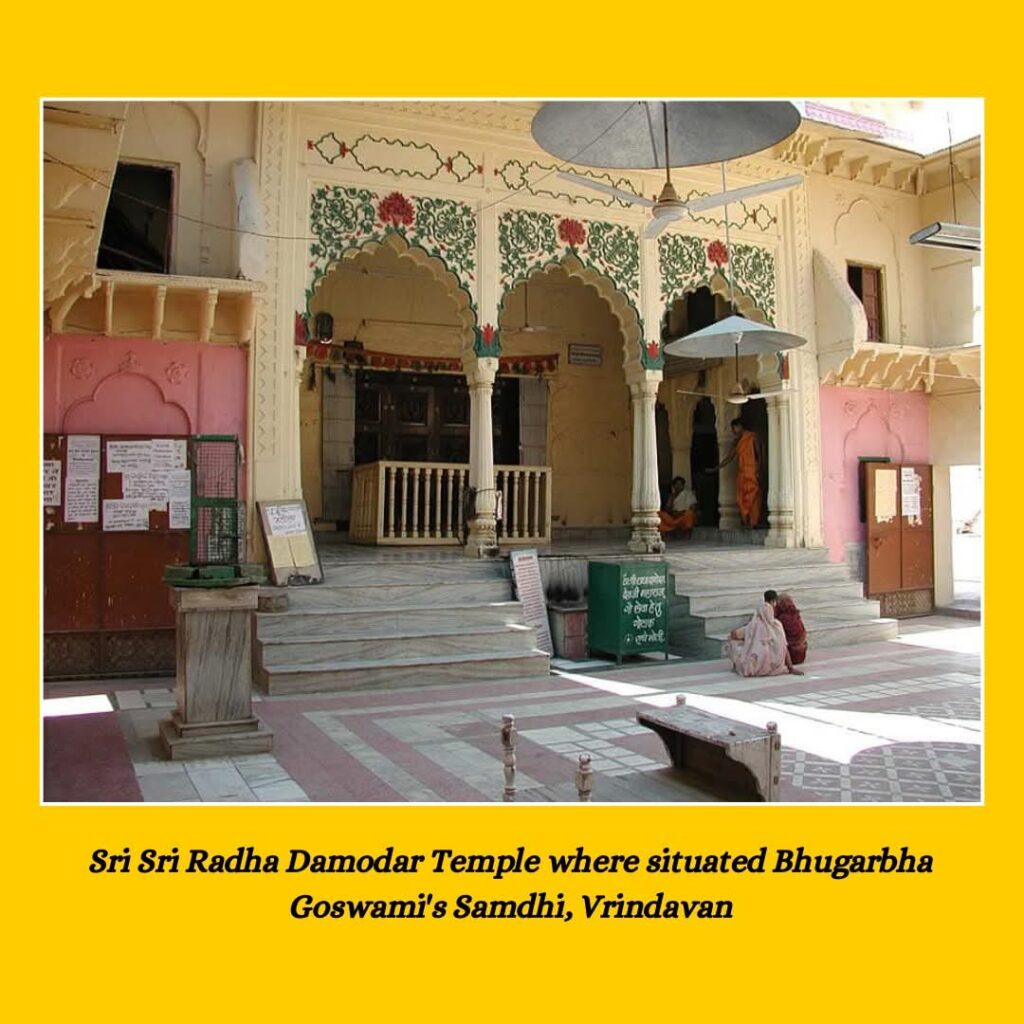 “Bhūgarbha Gosāñi, formerly known as Prema-mañjarī, was a great friend of Lokanātha Gosvāmī, who constructed the temple of Gokulānanda, one of the seven important temples of Vṛndāvana-namely, Govinda, Gopīnātha, Madana-mohana, Rādhāramaṇa, Śyāmasundara, Rādhā-Dāmodara and Gokulānanda-that are authorized institutions of Gauḍīya Vaiṣṇavas.”