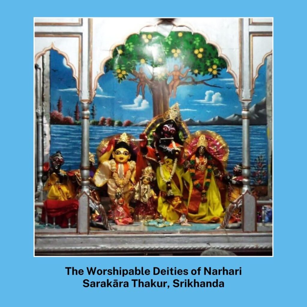 “Śrī Mukunda dāsa was the son of Nārāyaṇa dāsa and eldest brother of Narahari Sarakāra. His second brother’s name was Mādhava dāsa, and his son was named Raghunandana dāsa. Descendants of Raghunandana dāsa still live four miles west of Katwa in the village named Śrīkhaṇḍa, where Raghunandana dāsa used to live. Raghunandana had one son named Kānāi, who had two sons—Madana Rāya, who was a disciple of Narahari Ṭhākura, and Vaṁśīvadana […]