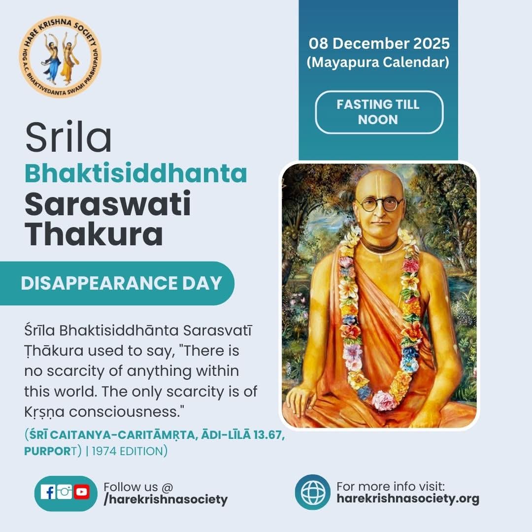 Srila Bhaktisiddhanta Sarasvati Thakura Prabhupada Tirobhava tithi (Disappearance day): https://harekrishnasociety.org/?p=31078