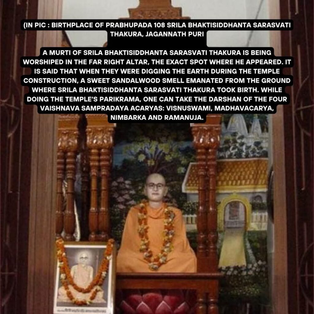 ‘Srila Bhaktisiddhanta Sarasvati Thakura was born in the holy pilgrimage place of Jagannatha Puri to Srila Bhaktivinoda Thakura, a great Vaisnava acarya in the line of succession coming from Sri Chaitanya Mahaprabhu. Although employed as a government magistrate, Srila Bhaktivinoda worked tirelessly to establish the teachings of Lord Chaitanya in India. He envisioned a worldwide spiritual movement and prayed for a son to help him achieve his dream.