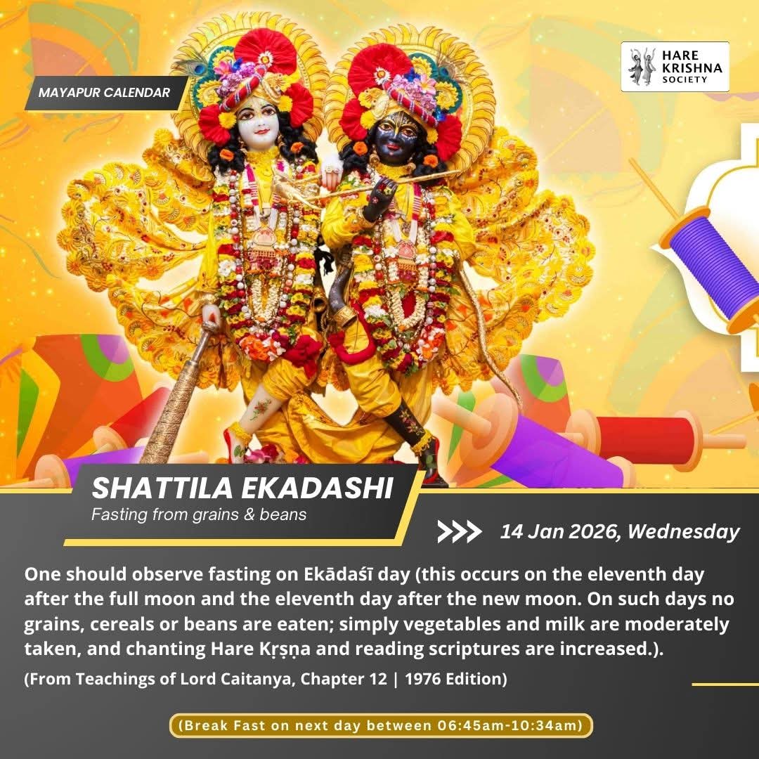 Sattila Ekadashi — fasting from grains and beans. Kindly avoid tea, coffee, etc., as well.
