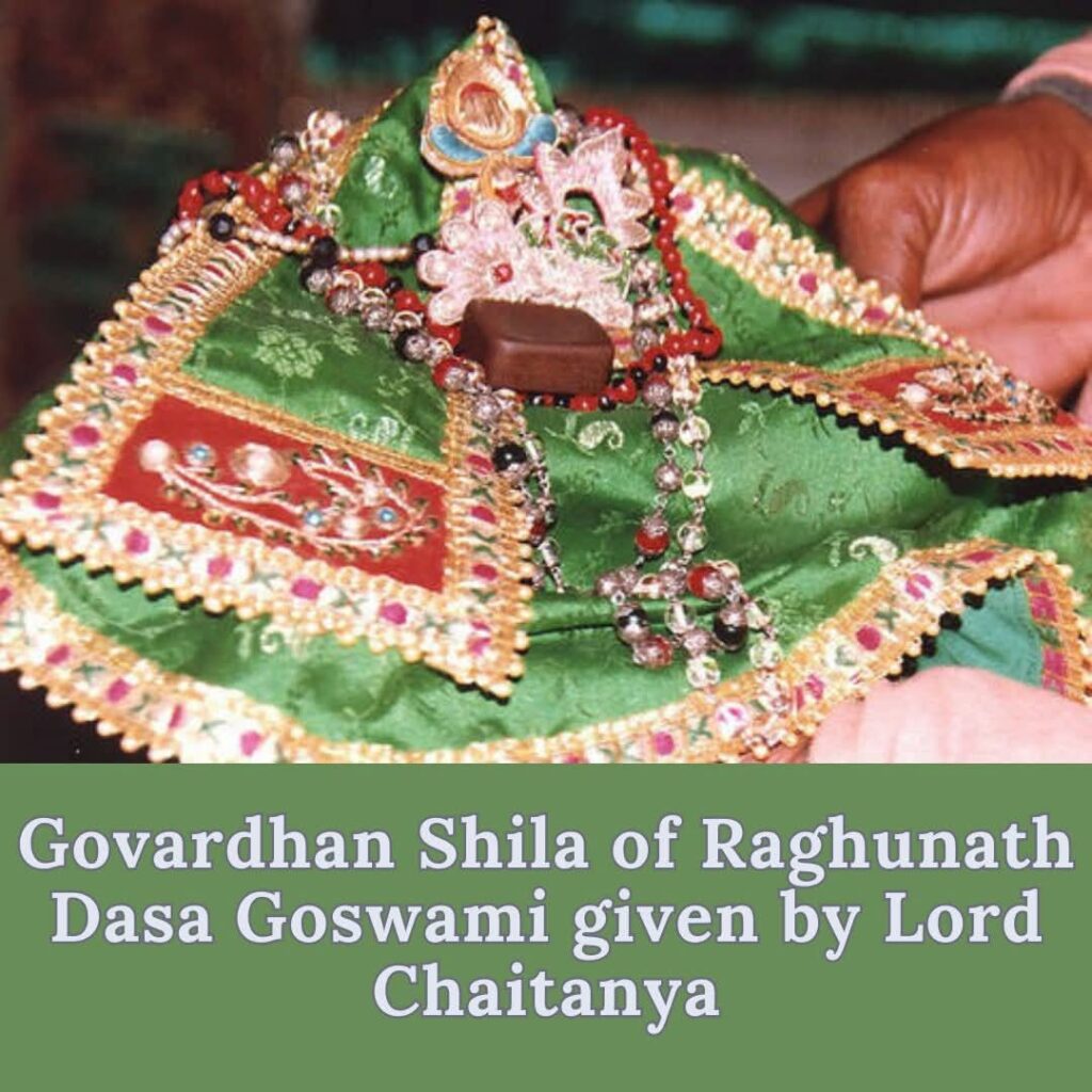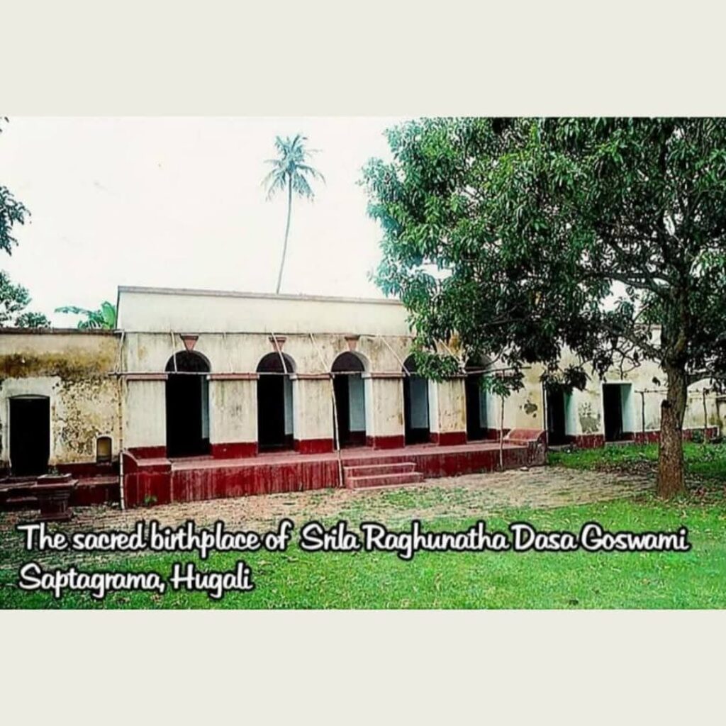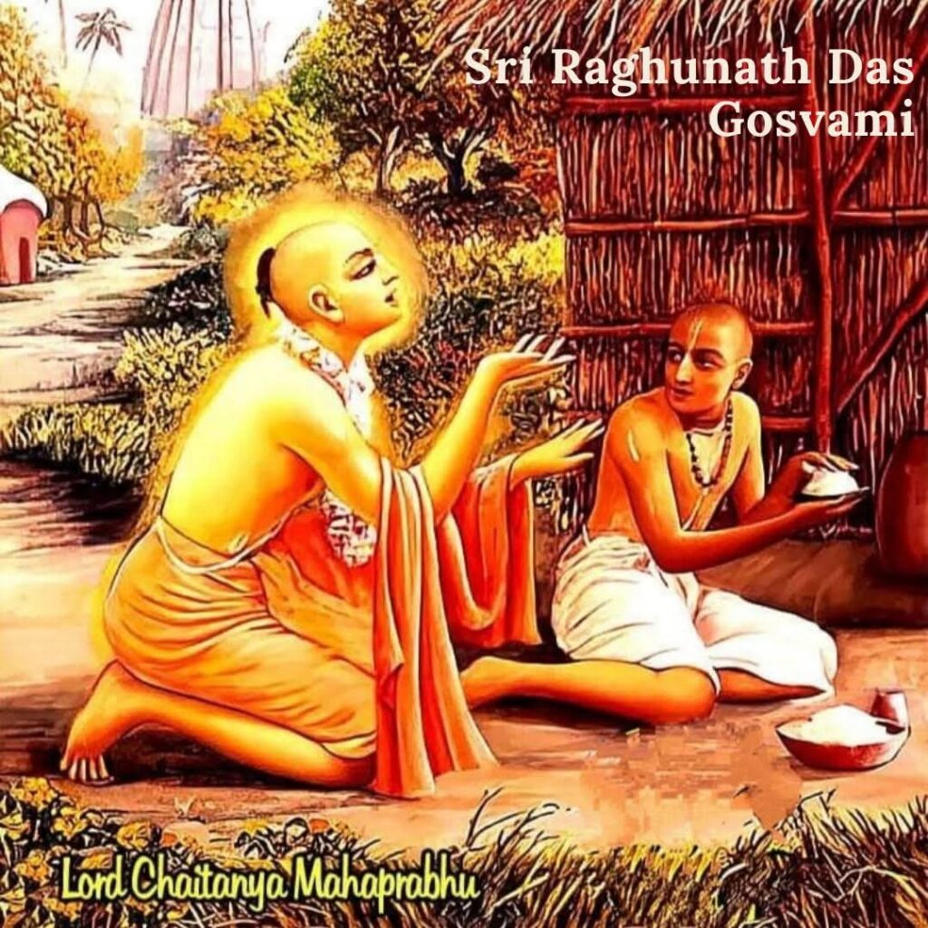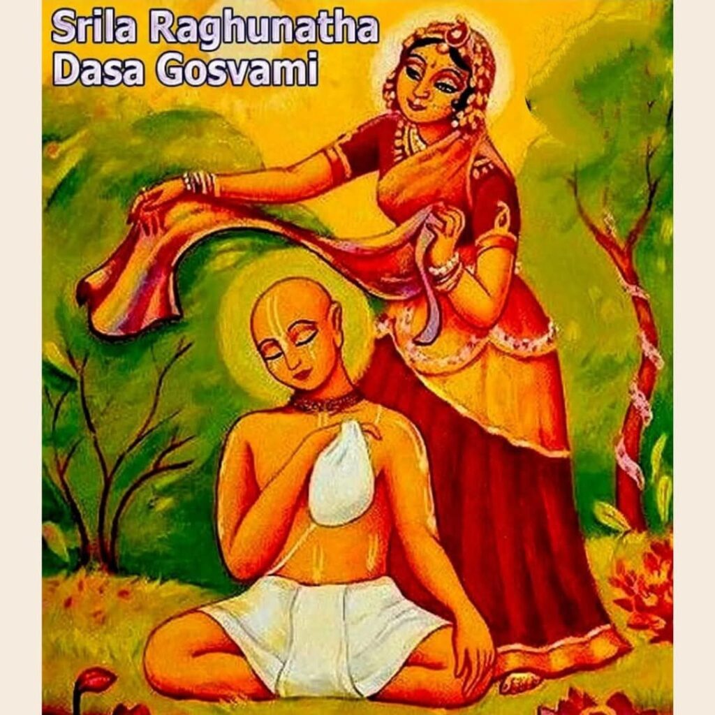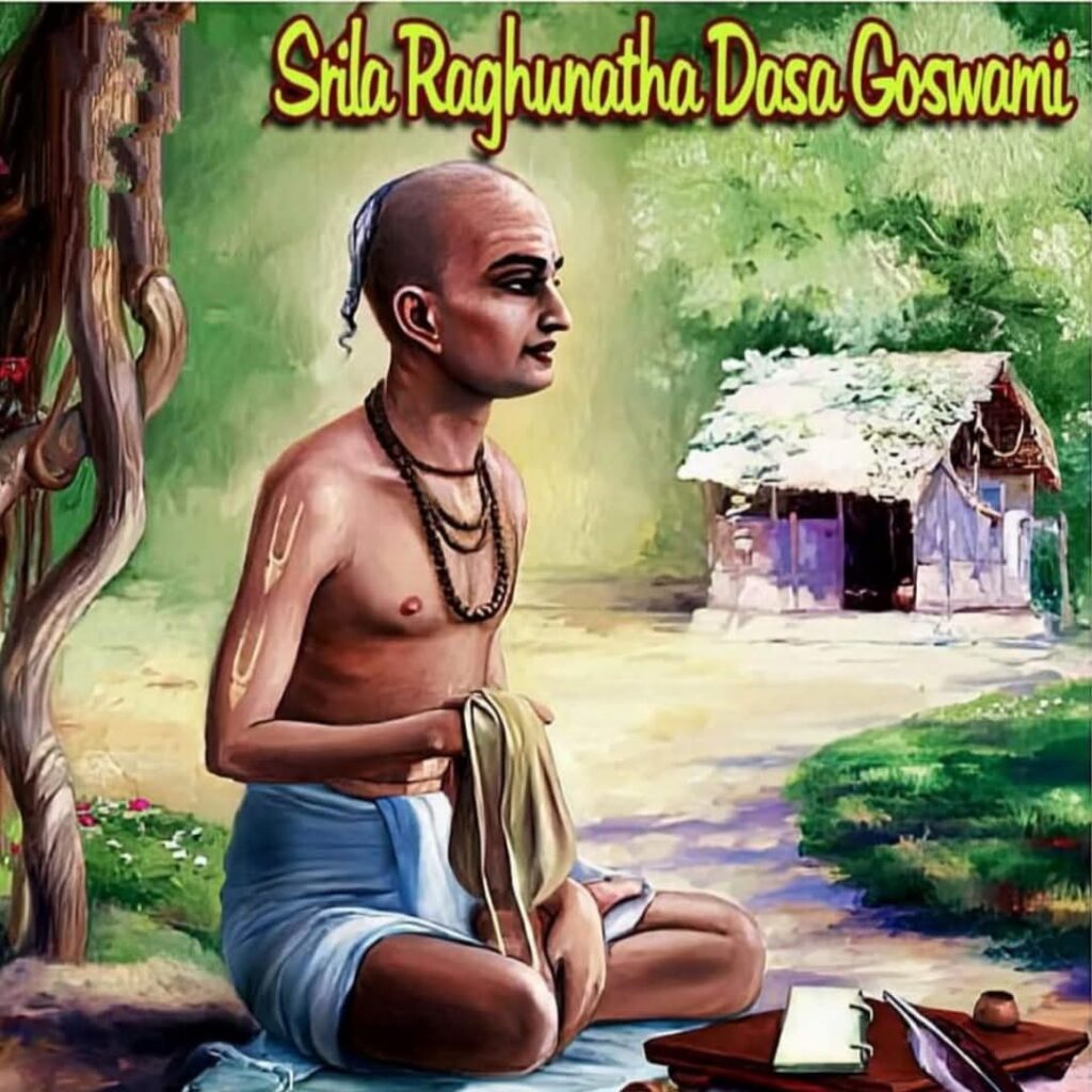 “Raghunatha Dasa Goswami was the only son of a wealthy landowner. At the age of fifteen, he met Chaitanya Mahaprabhu and later became one of the six Goswamis of Vrindavan. He led a most austere life of pure devotion and was the emblem of renunciation.