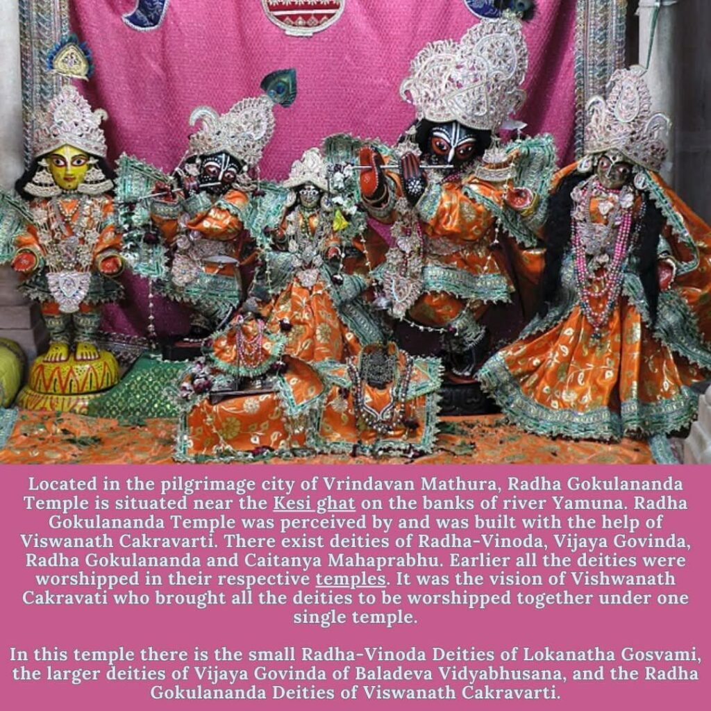 Viśvanātha Cakravartī Ṭhākura was one of the most prominent and influential teachers in the Gaudiya Vaishnava disciplic succession. He appeared in Devagram, Bengal, and received initiation from Ramana Chakravarti. His sannyasa name was Hari Vallabha Goswami.
