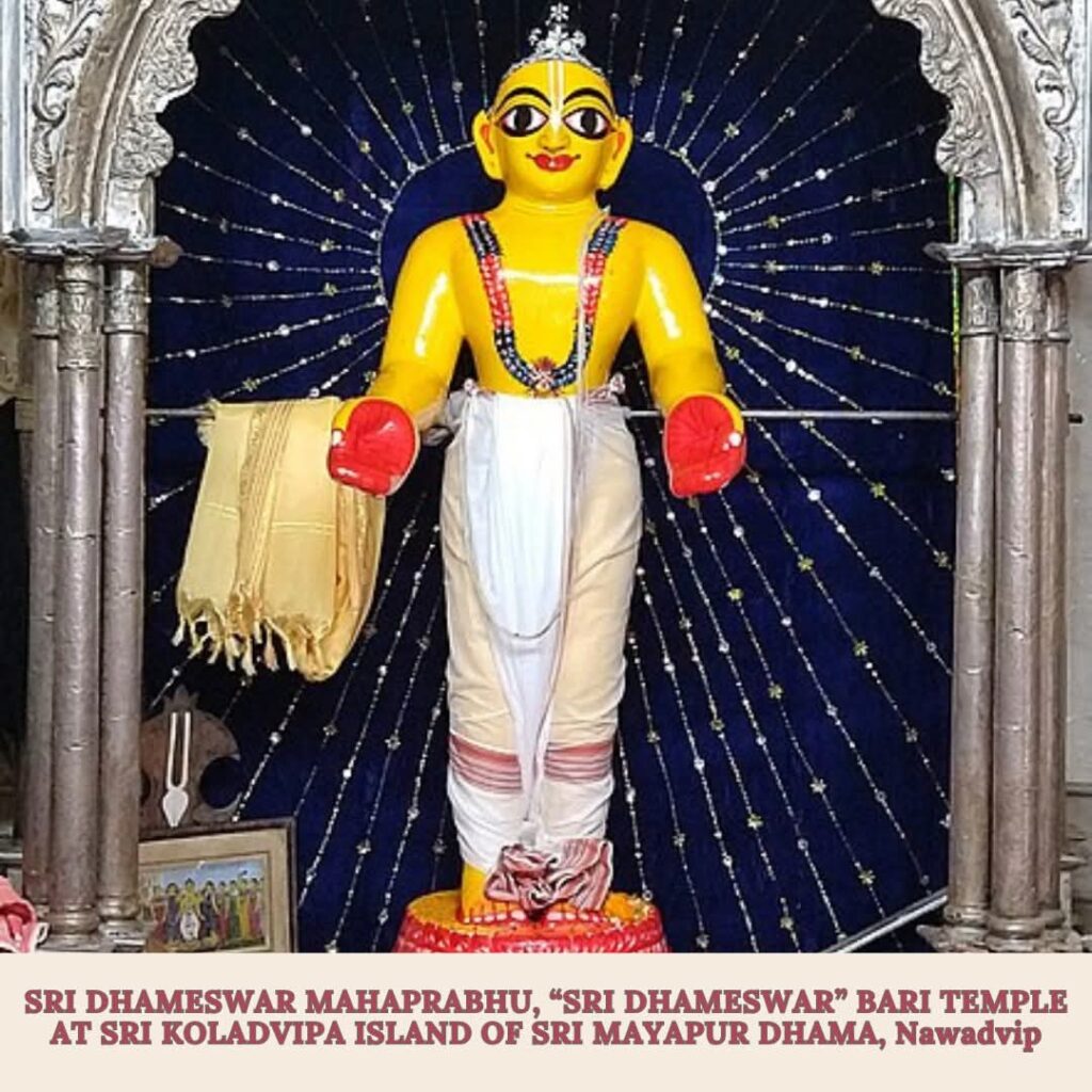 “Sri Raghunandana Thakura was the son of the great devotee Mukunda Dasa. Both were contemporaries of Sri Chaitanya Mahaprabhu. It is stated in the Bhakti-ratnākara (Eighth Wave) that Raghunandana used to serve a Deity of Lord Caitanya Mahāprabhu.”